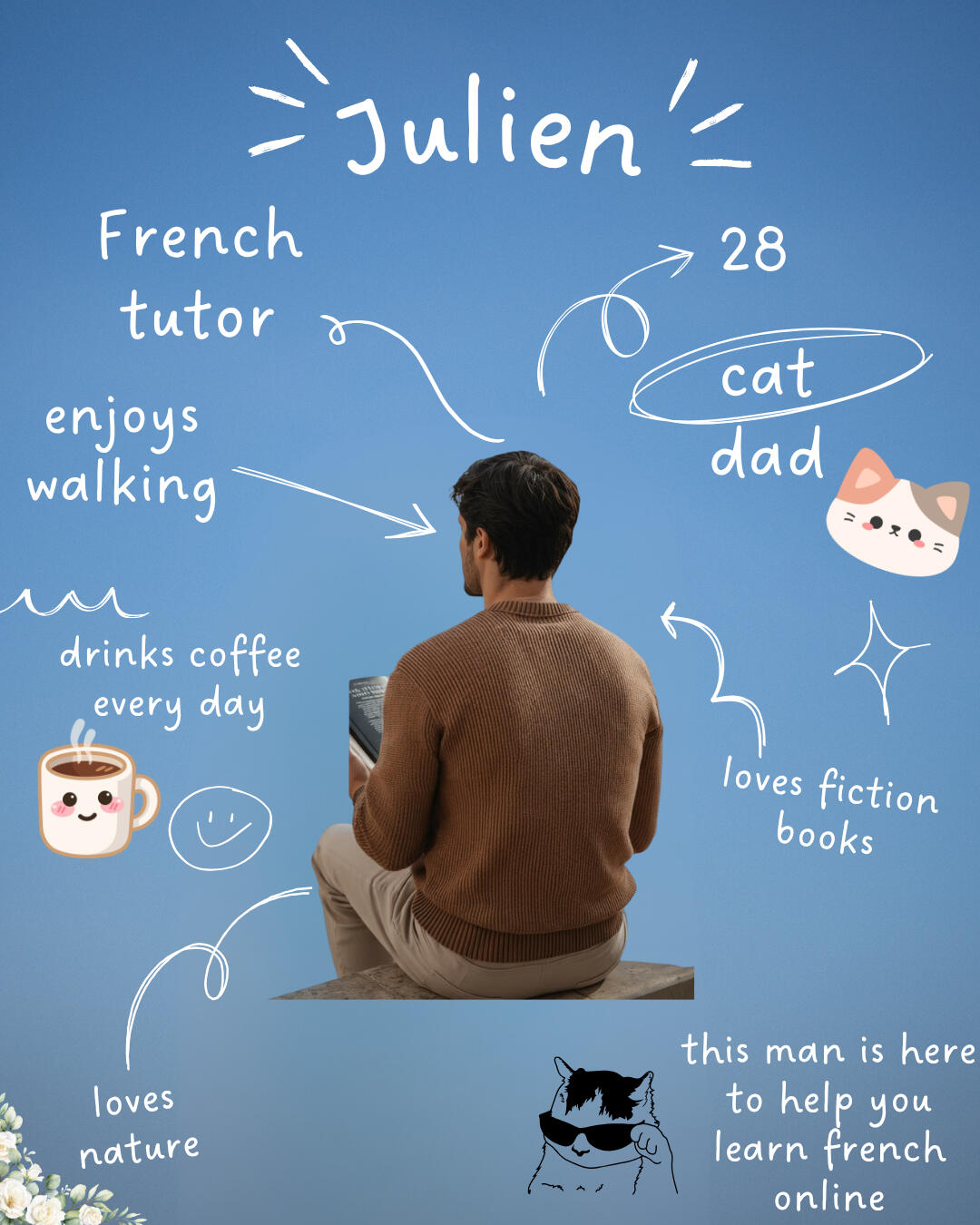 Bonjour ! I’m Julien, a French teacher from the sunny South of France. I’m passionate about helping learners of all levels improve their French through clear explanations, practical lessons, and real conversation practice.